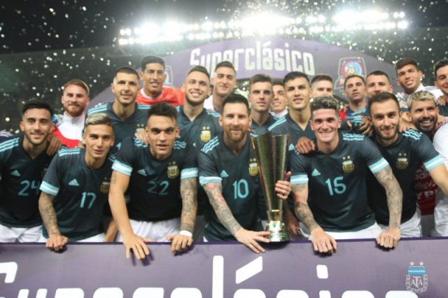 Messi absen dalam empat pertandingan Argentina sebelumnya karena skorsing karena menuduh CONMEBOL menguntungkan Brasil yang menjadi tuan rumah, yang memenangkan pertemuan semi final di Copa America dan ia membuat dampak yang menentukan dalam pertandingan persahabatan, laga yang disebut sebagai Superclasico de las Americas.