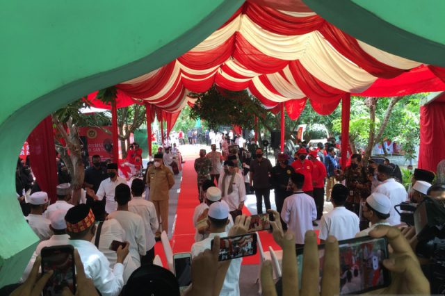 Saat tiba di lokasi, Presiden Joko Widodo yang turut didampingi Gubernur Aceh Nova Iriansyah disambut deangan selawat badar.